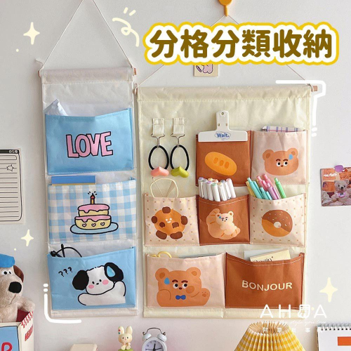 AHUA 阿華有事嗎 可愛卡通動物掛壁式收納袋7格款 F0048 生活百貨 分隔袋 收納袋
