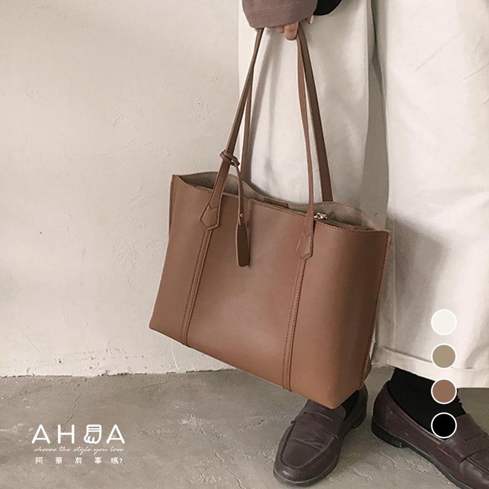 AHUA阿華有事嗎 韓系大容量皮革吊牌托特包 B0035 韓妞必備 百搭配件 包包 手提袋 肩背包 托特包
