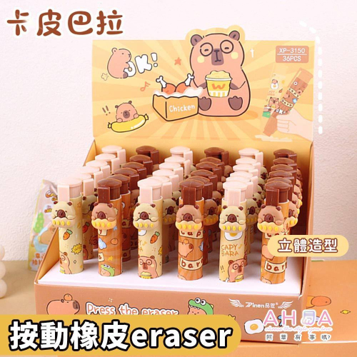 AHUA 阿華有事嗎 立體筆夾水豚按動式橡皮擦 O0050 可愛 文具 開學用品 辦公用品