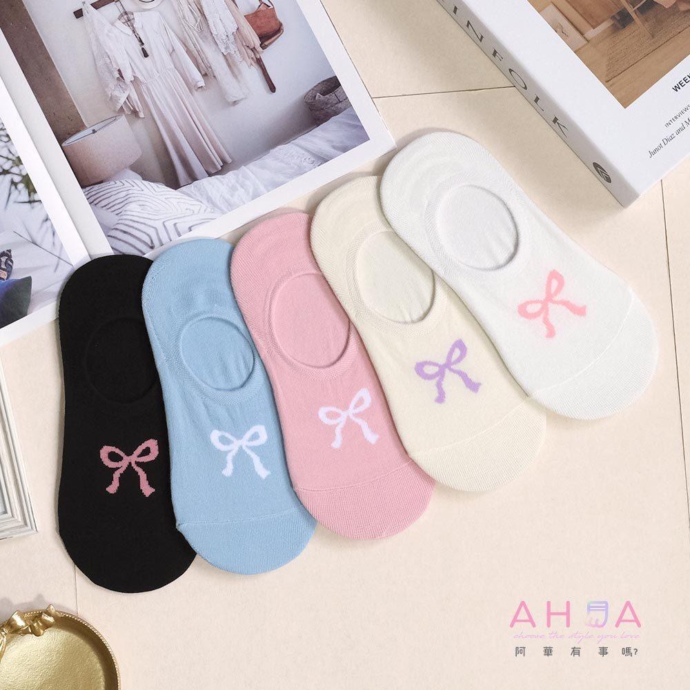 AHUA阿華有事嗎 素色緞帶蝴蝶結隱形襪 K2299 正韓襪子 百搭純棉襪 韓妞必備 少女襪