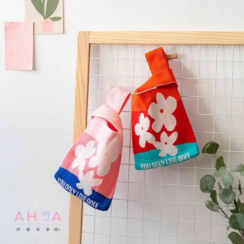 AHUA阿華有事嗎 韓系包包 拚色底三朵白花針織手提包 B0086 韓妞必備包 百搭配件 包包 袋子 手袋 肩包 日系