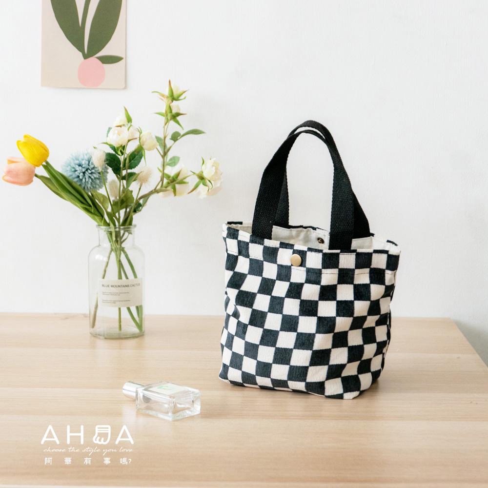 AHUA阿華有事嗎 韓系包包 棋盤格燈芯絨手提包 B0052 韓妞必備小物 百搭配件 包包 袋子 手袋 潮流風