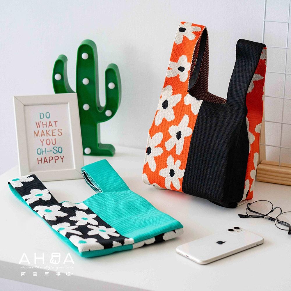 AHUA阿華有事嗎 韓系包包 滿版小花拼純色針織手提包 B0071 韓妞必備包 百搭配件 包包 袋子 手袋 肩包 日系
