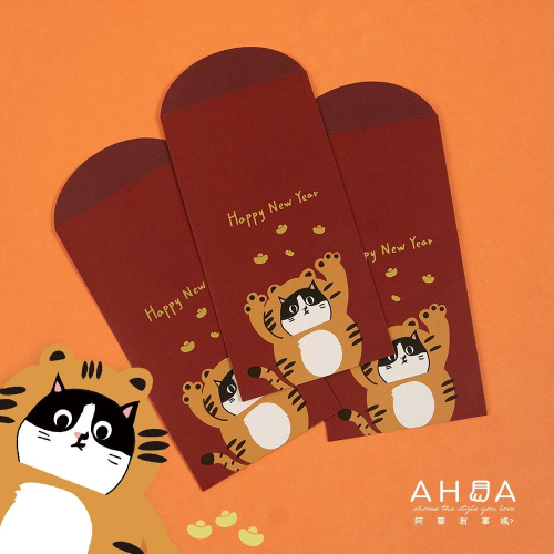 AHUA阿華有事嗎 阿華獨家訂製 2022虎虎生風貓咪紅包袋3入1包 D0009 新年過年春節 燙金紅包袋