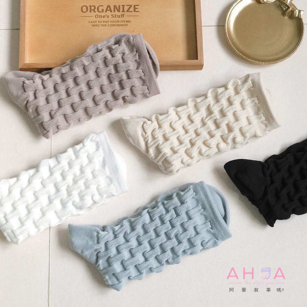 AHUA阿華有事嗎 滿版純色立浮雕格子中筒襪 K2199 正韓襪子 百搭純棉襪 韓妞必備 少女襪