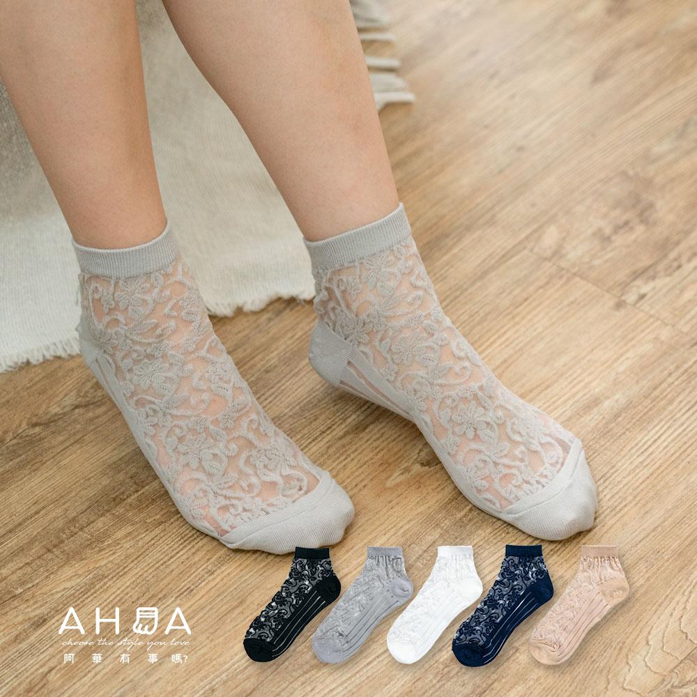 AHUA阿華有事嗎 韓國襪子 滿版花紋直條透膚短襪 K1753 正韓少女襪 韓妞必備卡通襪 百搭純棉襪 短襪 可愛