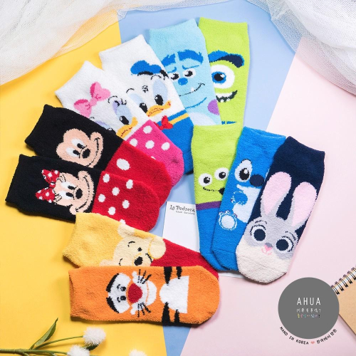 迪士尼AHUA阿華有事嗎 韓國襪子 絨毛迪士尼立體耳朵短襪 K0261 正韓熱賣款 必備卡通襪 百搭絨毛襪