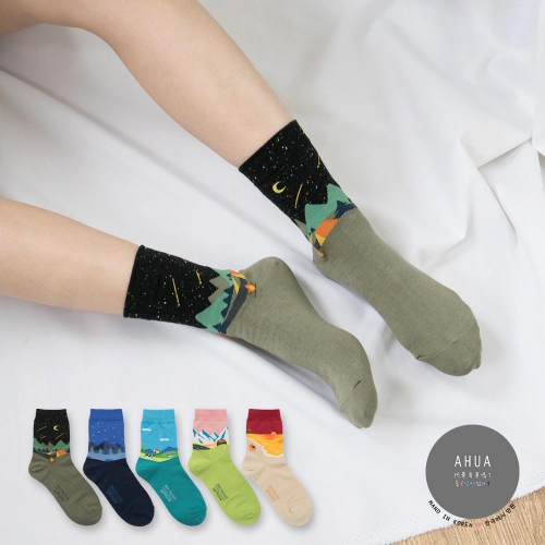 AHUA阿華有事嗎 韓國襪子 唯美風景畫中筒襪 K0623 正韓少女襪 韓妞必備中筒襪 百搭純棉襪【現貨免運】