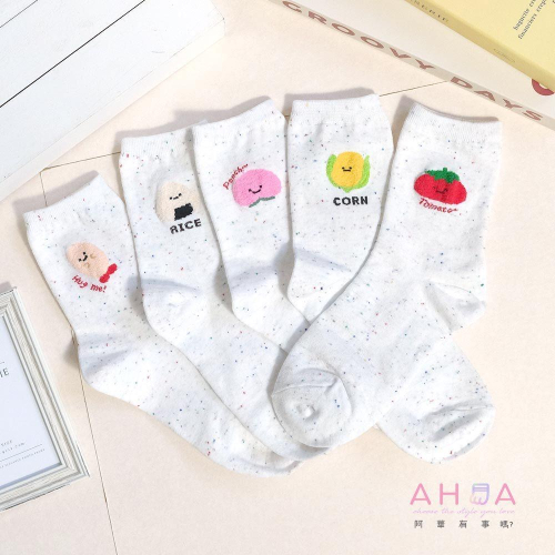 AHUA 阿華有事嗎 點子紗立體毛毛笑臉食物中筒襪 K2308 正韓襪子 百搭純棉襪 韓妞必備 少女襪