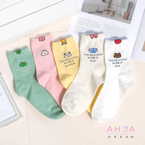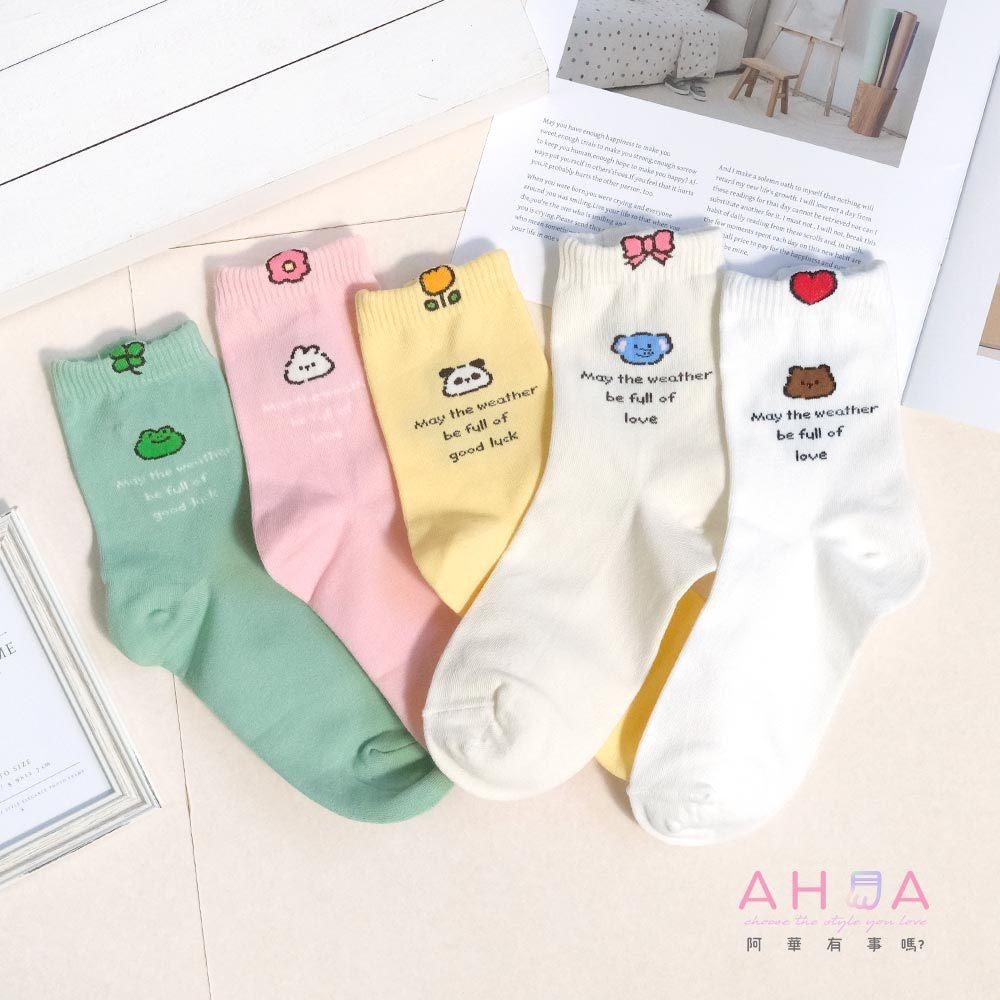 AHUA 阿華有事嗎 立體耳朵動物英文語錄中筒襪 K2311 正韓襪子 百搭純棉襪 韓妞必備 少女襪