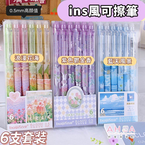 AHUA 阿華有事嗎 花朵風景按動可擦中性筆(一盒6支) O0053可愛 文具 開學用品 辦公用品