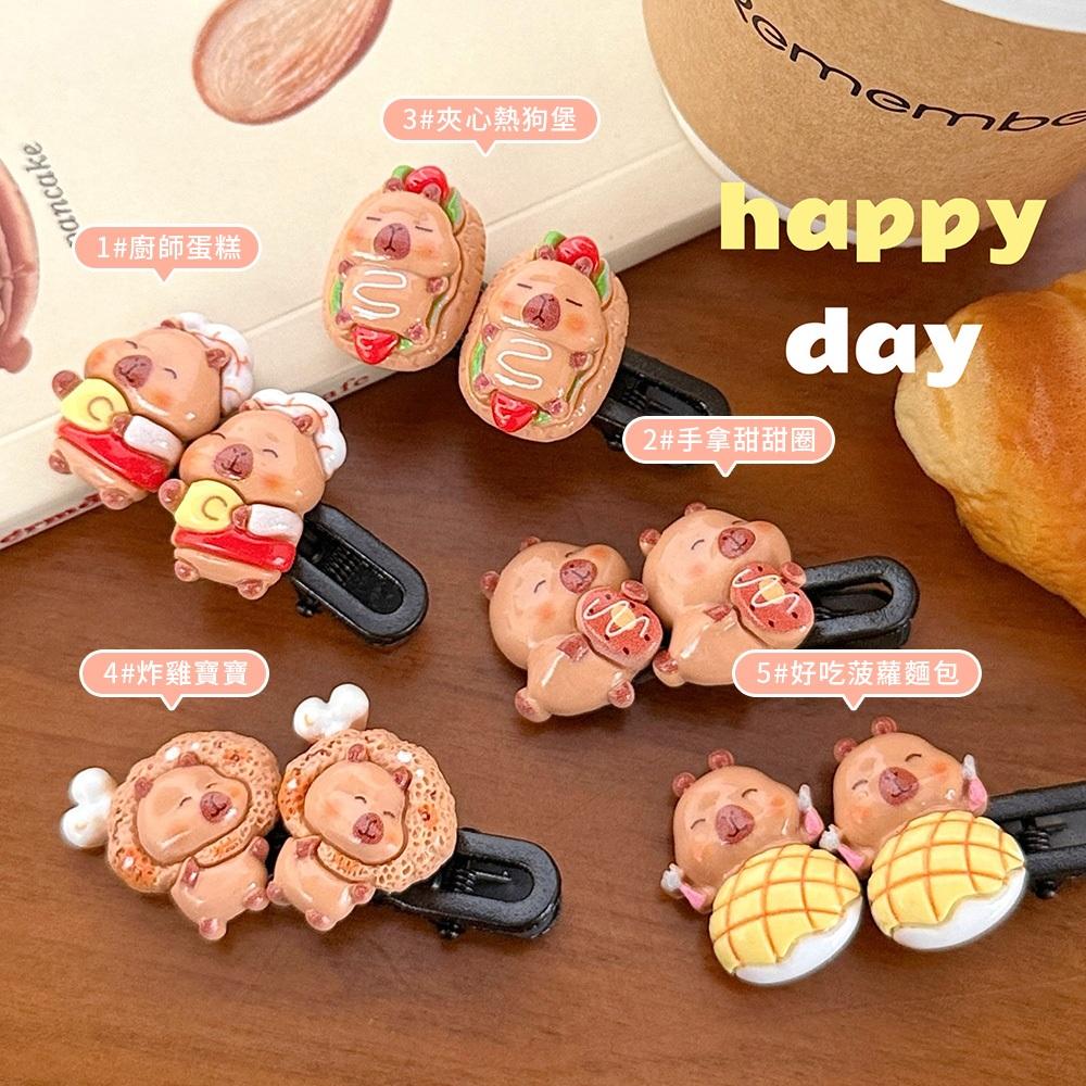 AHUA 阿華有事嗎 瞇瞇眼水豚食物髮夾 E0133 韓系可愛 百搭 少女 髮夾 髮飾 配件
