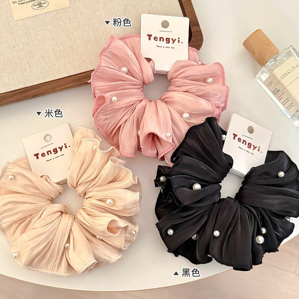 AHUA 阿華有事嗎 珍珠流光紗緞面髮圈E0127 韓系女裝配件清新 百搭 韓風 大腸圈 髮飾 頭飾 時尚 基本款