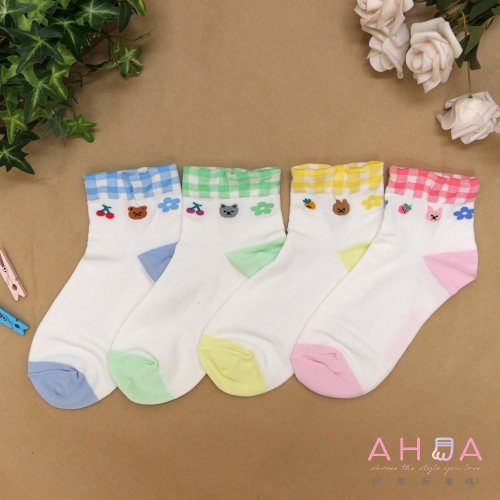 AHUA 阿華有事嗎 Dear 小動物撞色格紋無痕襪口短襪 K2324 正韓襪子 百搭純棉襪 韓妞必備 少女襪