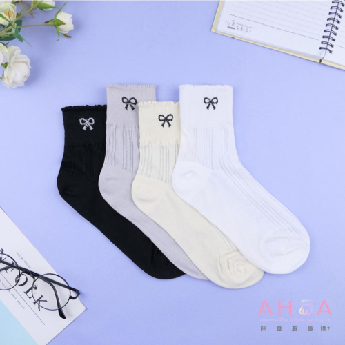 AHUA 阿華有事嗎 花邊微透膚蝴蝶結中筒襪 K2342 正韓襪子 百搭純棉襪 韓系必備 少女襪