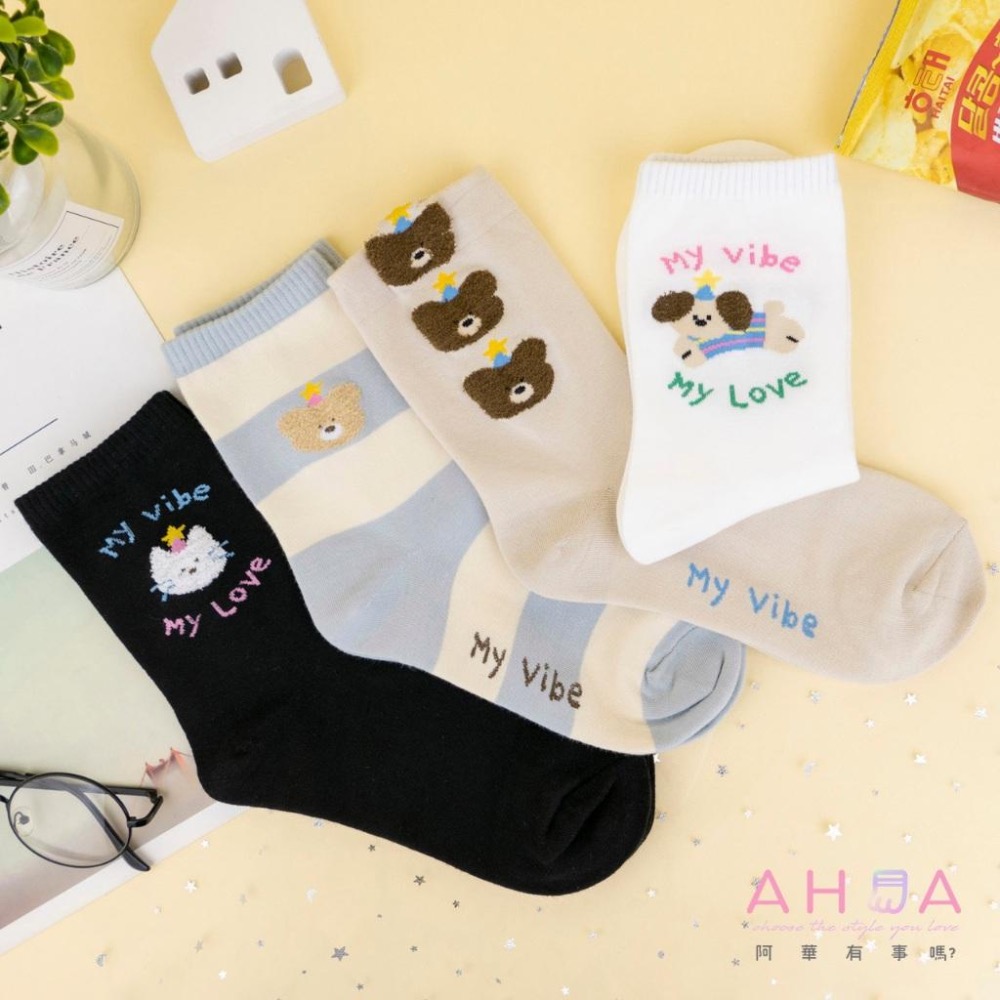 AHUA 阿華有事嗎 My vibe立體毛毛動物中筒襪 K2406 正韓襪子 百搭純棉襪 韓系必備 少女襪
