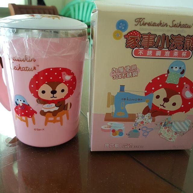 【薇樂園】全新 | 日本超人氣家事小浣熊 304不鏽鋼泡茶杯 7-11限量 粉紅色 好朋友款