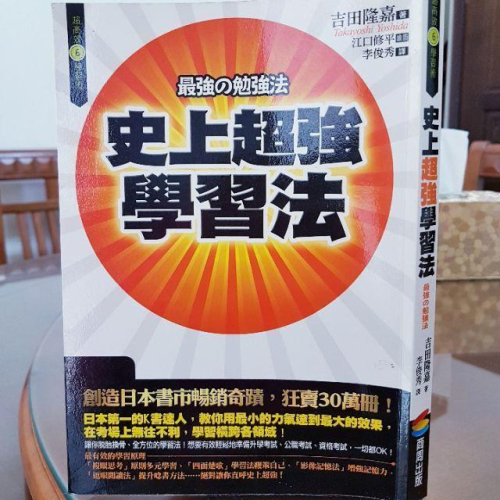 #學習 #記憶 #國考 實拍細圖,品相如圖,保存良好,#唯封面封底有些許黃點,不影響閱讀,出貨前會用酒精消毒整理清潔。有任何問題歡迎詢問,高標客人請繞道,售後不退,全新220,二手我賣150,讚啦👍。 #內容簡介  你能想像一個東京大學理科工學院的人,不但考過國家公務員考試經濟類科,同時也是NHK(日本放送協會)播報員,還考上東京大學醫學博士班,並通過醫師國家的考試嗎?   這位吉田兄不是聰明絕頂的天才,也不特別愛唸書,就連記憶能力也低於一般水平,那麼他為何能通過各種考試呢?   其中的關鍵,是他找到了能輕鬆又高效率學習的祕訣。只要學會了這種方法,任何人都可以在短期內就輕鬆、快樂地提升學習效果。   這本書裡所提供的方法,是吉田為了通過上述的考試,經過反覆的錯誤嘗試而逐步累積出的經驗。身為醫生的吉田還努力嘗試將精神醫學、腦生理學活用在學習法上,並認真檢視從經驗所衍生的學習方法是否有科學性的根據。學會「吉田式學習法」,讓你考場無往不利,學習橫跨各領域! #目錄 第1章 灘高式學習法超強的原因(原理篇) 1.吉田式學習法的出發點 2.全力專注於興趣所在 3.多思考有趣的解題方法 4.做適度的運動讓學習更順利 5.將學習當成快樂的比賽 6.用「四面楚歌」學習法鞭策自己 第2章 想作什麼就作什麼!(多重學習篇) 1.同時學習截然不同領域的知識 2.盡量同時學習文、理不同領域 3.使用睡眠中的腦,可提高學習效率 4 .按照學習主題,分別使用不同的書架、桌子、文具 5.培養「複眼思考」 第3章 學習不能選擇時間與場所(活用時間篇) 1.學習不一定要端坐在書桌前 2.通勤的時間是黃金時間 3.浴室、洗手間也能成為學習場所 4.國會議員的用餐時間學習法 5.早上的起床方式有巨大的影響 第4章 記憶力的祕密,藏在漫畫中(記憶力篇) 1.利用漫畫逐漸提升競爭力 2利用「影像記憶法」變成記憶力高手 3.聯想是記憶力倍增的關鍵 4.最強的雙關語,有最強的邏輯 5.有充足的睡眠 才能有良好的記憶力 第5章 書本不可從頭開始讀(書本篇) 1.書本不可按順序從頭讀到尾 2.先利用書本的預習,掌握書本的全貌 3利用「逗哏閱讀法」看書 4.報紙是用來遠看的東西 第6章 在資格考試扮演超級現實主義者(考試篇) 1.資格考試及格了才有意義 2.複習大學考試的科目是捷徑 3.最珍貴的是全力爭取勝利的努力 第7章 真正重要的是向人學習(建立人脈篇) 1.向人學習是最有效率的方法 2.參加演講,和名人交朋友 3建立用一支電話就能順利收集訊息的人脈 4.利用教導別人深化自己的知識 5.和他人分享自己的學習成果 原價220, 全新我賣170, 幫你省摳摳,促銷賺評價 ,讚啦!