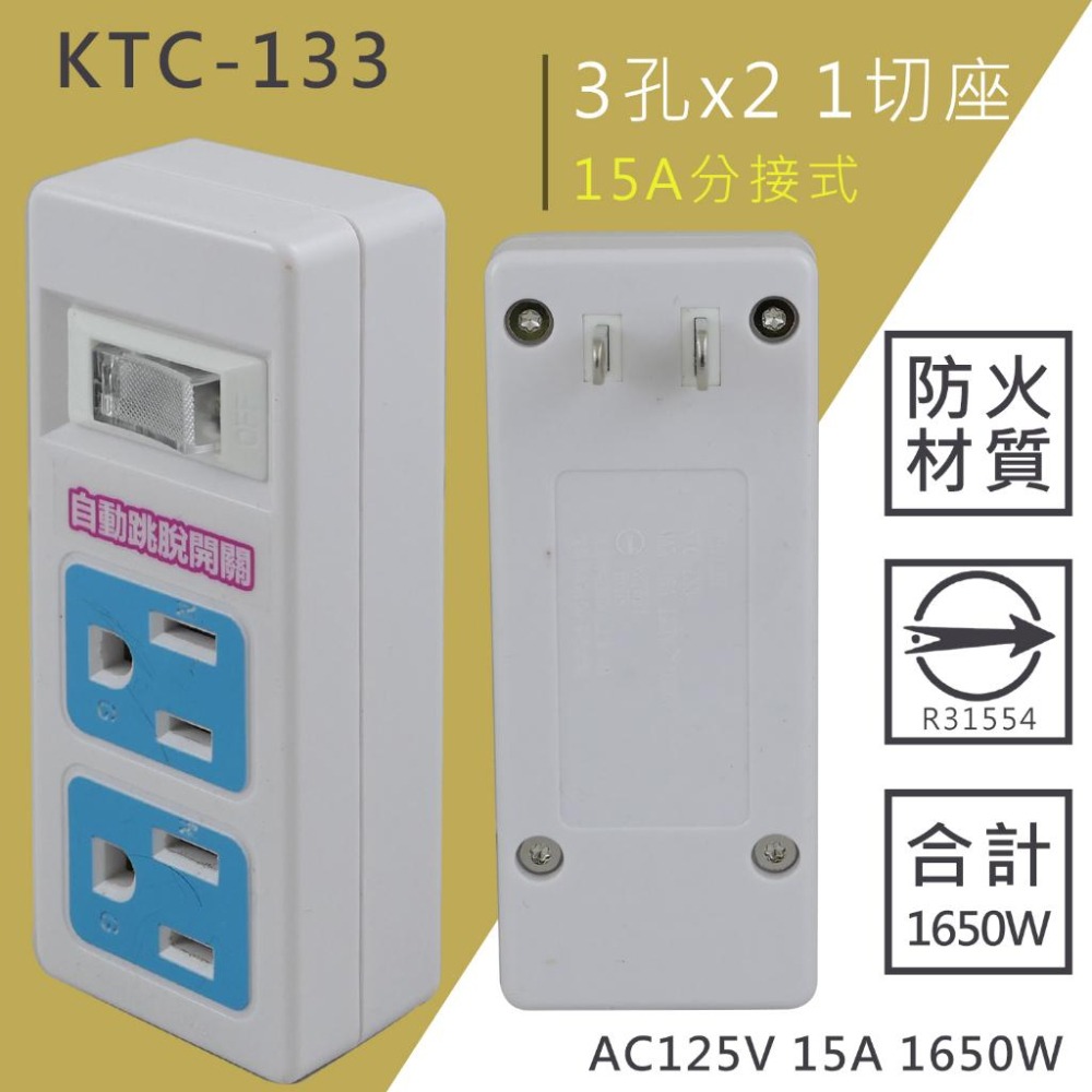 【BC】1開2插3孔自動跳脫開關壁插轉接器(KTC-133)