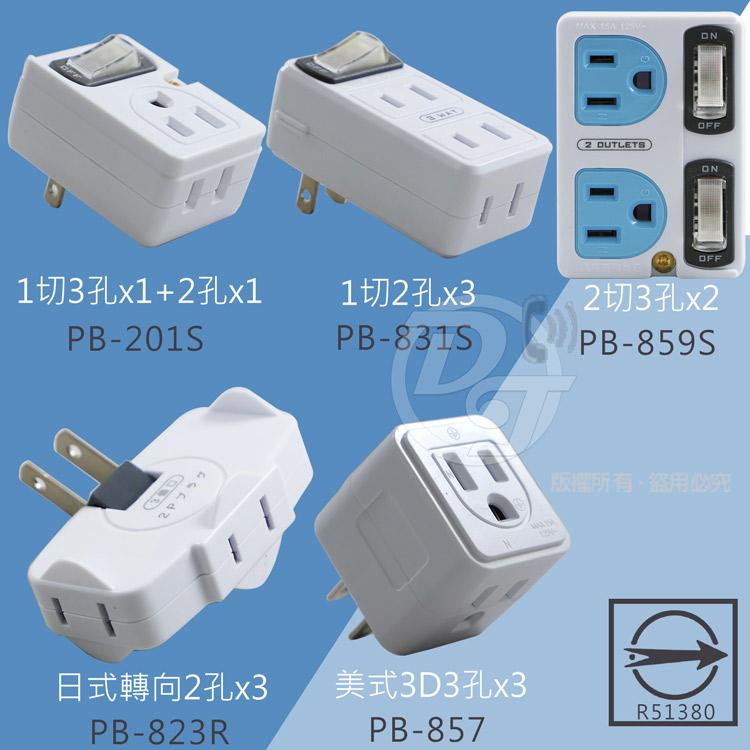 動力公牛 節電1開2插/3插分接器 PB-859S PB-831S PB-201S PB-857 PB-823R
