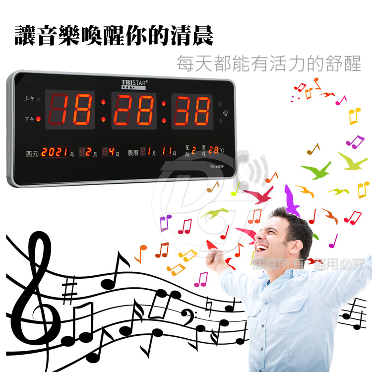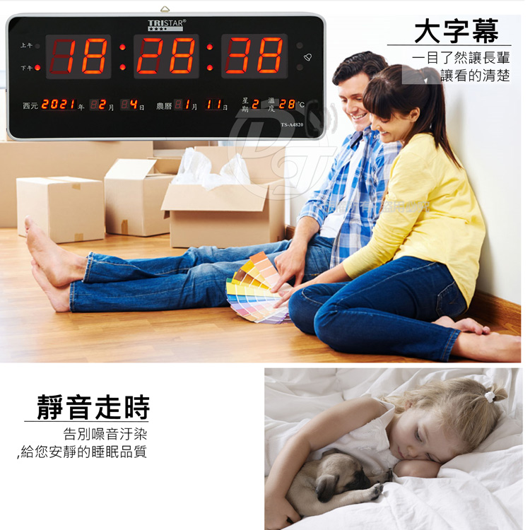 - ◎品名:TRISTAR 插電式大數字電子萬年曆鐘 TS-A4820