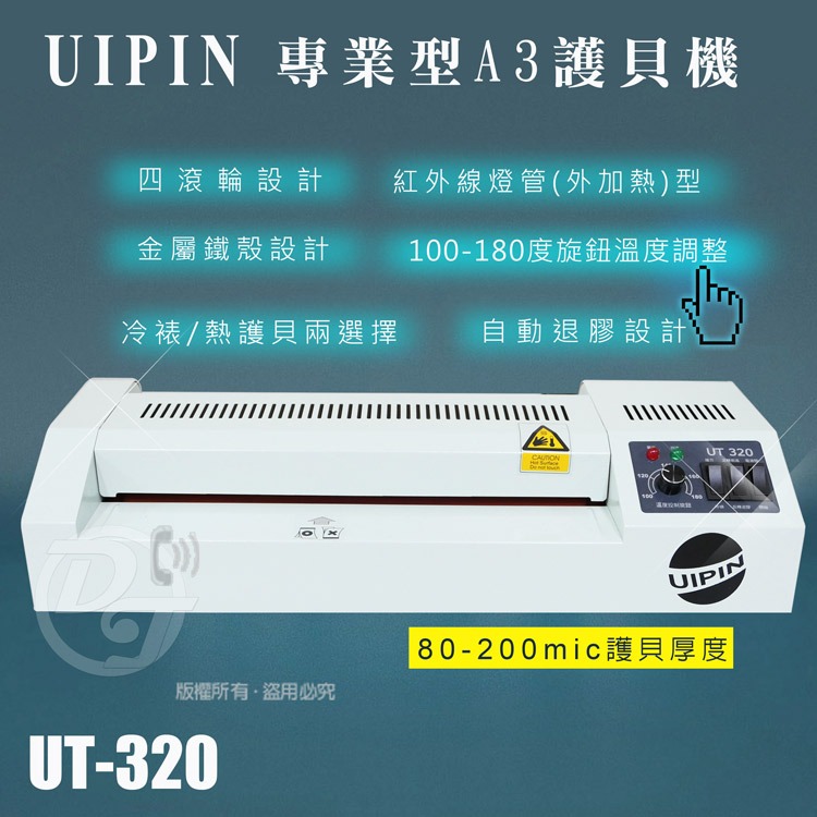 UIPIN辦公室(4滾輪)A3護貝機 (外加熱型) UT320