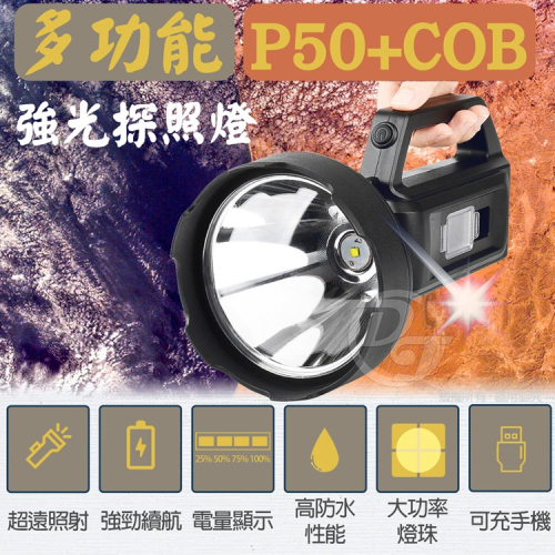 • EDSDS P50超亮燈頭+COB側燈多功能強光探照燈 EDS-G784