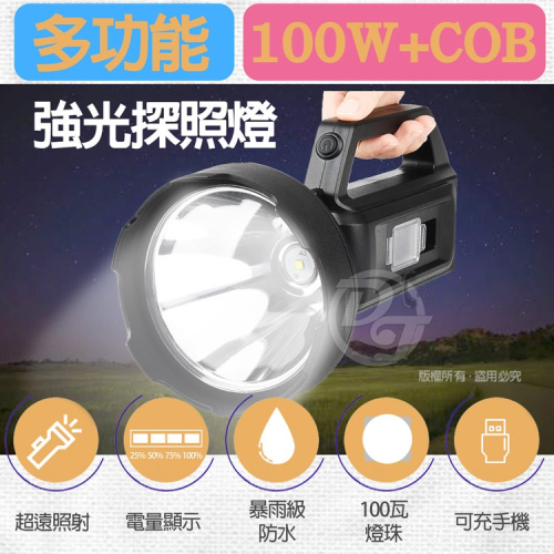 COBEDSDS 100W燈泡+側燈多功能強光探照燈 EDS-G785 |電源充飽自停|耐用且防摔|