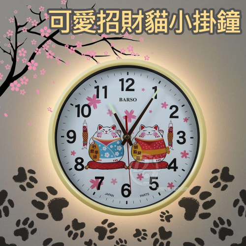 • BARSO 可愛招財貓9吋靜音夜光掛鐘 BS-812