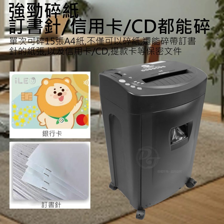 單張入紙量可達15張,具有多種細碎型功能,可碎CD信用卡、碎紙張...等