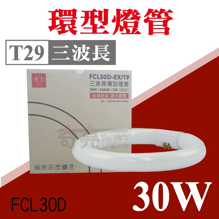 【奇亮科技】旭光 太陽神 30W環型燈管 白光T29 日光省電燈管 環形燈管 環管圓管圓燈管 圓型 FCL30D/T9