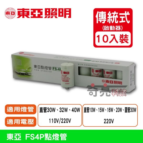 東亞 FS-4P / 1P 10入裝 日光燈管點燈器 啟動器 點燈管 110V【奇亮科技】含稅附發票