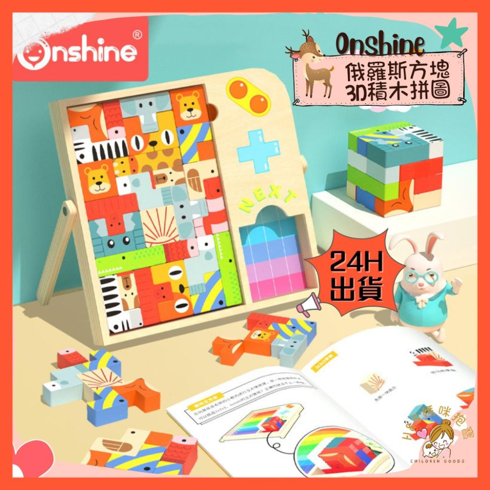 【24H台北出貨】正品 Onshine 俄羅斯方塊 3D 立體 積木拼圖 動物認知 兒童禮物 木頭 邏輯思維 兒童禮物