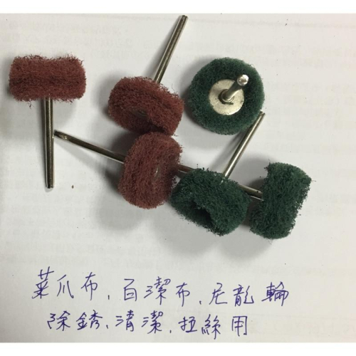 材質:優質加厚百潔布(菜瓜布) 規格:25MM 柄:3MM 形狀:T型 電磨用,主要適用於去除毛刺,除鏽,除塵,去除氧化層,鍍層,可以提高金屬石材等材料品質,是機械加工工藝重要一環。是必要,經濟,高效率的方法。 迷你刷作用:廣泛應用於微型電子儀器,珠寶首飾及印模生產等行業,並可配套在生產各類電動工具廠家,是目前金屬與非金屬材料小面積除鏽除毛刺,表面擦亮等高效拋光工具