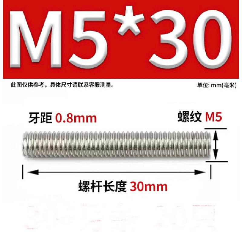 M5*30 304不鏽鋼 短牙條 全螺紋 螺柱 絲桿 通絲 螺桿