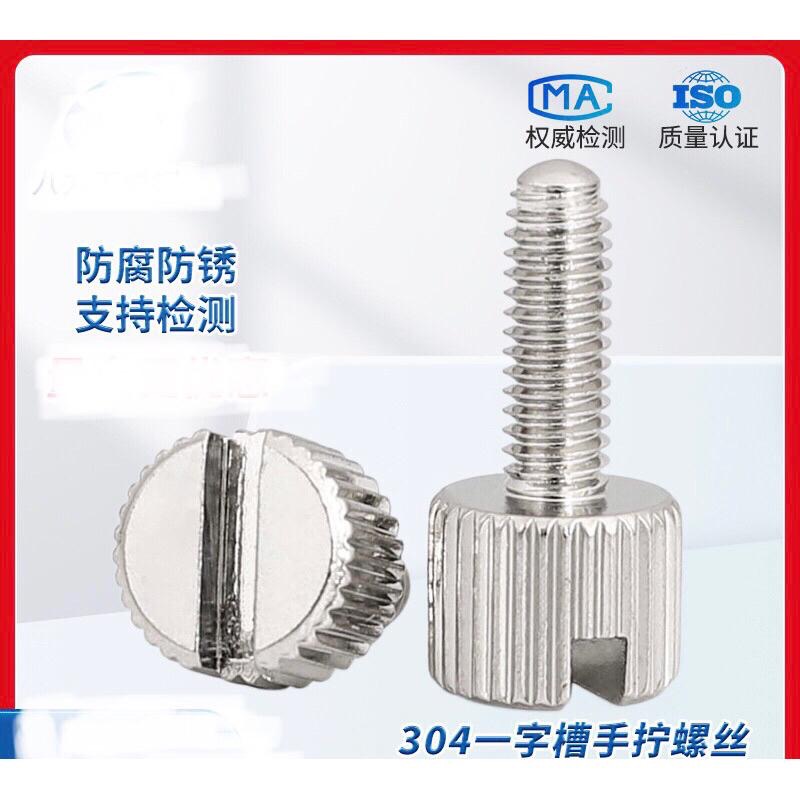 (2/4支裝)304不鏽鋼 開槽 手擰螺絲 一字槽 竪紋 滾花 螺釘 平頭螺絲M3 M4