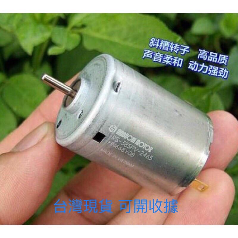 原裝進口的萬寶至 385PV-2465 微型電機,做工精美,品質鑄就品牌,萬寶至電機質量當然是槓槓的,而且第一次發現萬寶至385電機,居然也採用了斜糟的轉子,斜糟轉子的電機生產難度高,但電機使用效率高,是高品質的直流電機才採用的方式,相信這應該是萬寶至新款的385電機,是近期的產品。 全新原件,但這一次是一件裝 125 PCS。 電機直徑:27.6 MM 電機長度:35.7 MM 輸出軸: 2.3 MM 輸出長度:11.5 MM 螺絲孔: M 2.5 螺絲孔距:16 MM 重量:71 g 電壓 : 12 V 轉速 : 9150 轉  電流 : 0.14 A 電壓 : 18 V 轉速 : 13800 轉  電流 : 0.16 A 電壓 : 24 V 轉速 : 18500 轉  電流 : 0.2A 通電試機,聲音柔和,力量強勁,這電機的功率也不 小了,請注意供電的電源的電流最少要3A以上,如果太小 了影響電機的功率和扭力的,品質鑄就品牌,萬寶至電 機,質量當然是桿桿的。 如果它的參數合適你用的話,就 別猶豫了,盡快下手吧..........