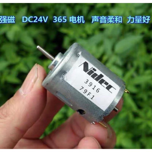 我們也是第一次碰到這種奇葩電機,上面有張紙標籤,是日本Nidec(3916-79F1)的字樣,但確實電機上沒有任何Nidec電機的標誌,而且這批電機是沒有包裝原箱,是用其他紙箱包裝,所以我本人不認為這是日本Nidec電機,估計是其他廠家生產的,可以代替Nidec(79F1)這個型號的電機吧。不過這只電機做工也還不錯,通電試機,聲音安靜 ,力量強大。 電機直徑 : 27.7 MM 電機高度 : 32.5 MM 電機軸徑 : 2.3 MM 輸出軸長度 : 13 MM 重量 : 57 g 電壓 : 12 V 轉速 : 4900 RPM 空載電流 : 84 MA 電壓 : 24 V 轉速 : 9800 RPM 空載電流 : 95 MA 通電試機 ,DC12V非常靜音,轉速比較低,扭力很好了,DC24V時扭力就更強大了,但聲音也一樣柔和,也還是算安靜的,這是一款做工相當不錯的365電機,而且溫升低,相對不容易發熱,沒有原箱包裝,外觀還是挺好的,但確實無法證實它是日本 Nidec 的電機。