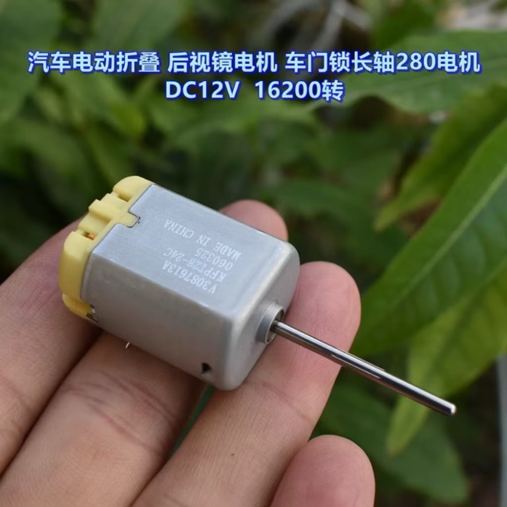 庫存全新,車用強磁280馬達,適用電壓是6V-12V,額定電壓是DC12V,空載轉速是16200 轉,扭力強大,這款280馬達的正負極是二個插孔,沒有引線的,這應該是應用在汽車電裝器件上的馬達,一般是應用在電動折疊後視鏡,或者車門鎖,或者轉向角限止器上。