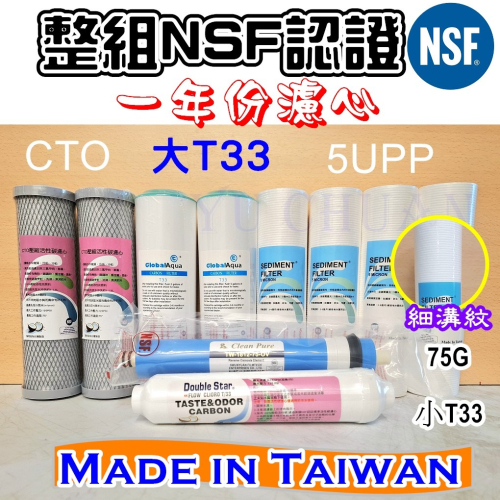五道RO 75加侖 NSF認證 逆滲透五道式濾心 一年份濾心 台灣製造 第二道大T33椰殼活性碳