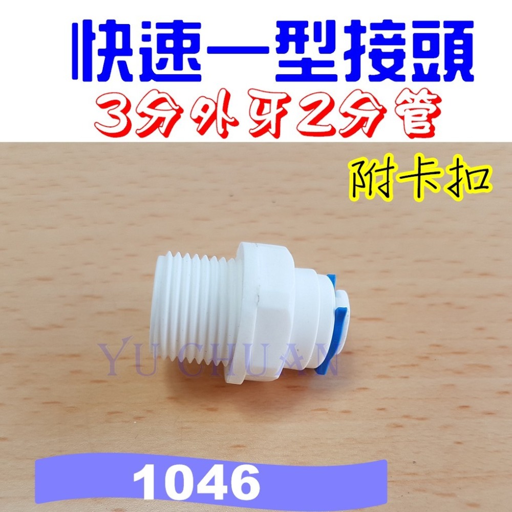 淨水器快速接頭 一型接頭 塑膠接頭 1046 附卡扣 3分外牙2分管 #NSF認證快速接頭 快插接頭提醒: 將RO管插入接頭卡住(一定要插到底)鎖緊後插入藍色卡扣固定 淨水器周邊配件歡迎詢問