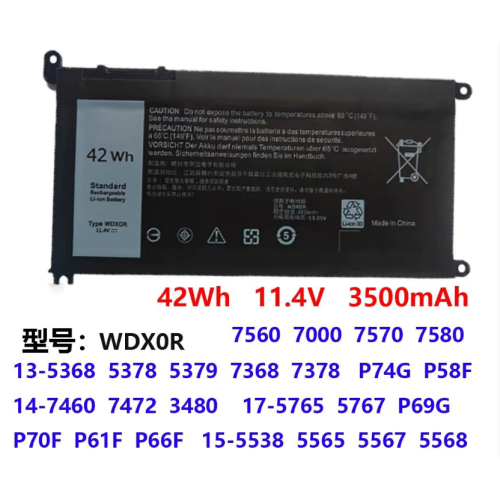 產品名稱:DELL WDX0R WDXOR 原廠電池 14 5468 5471 15 5567 5767 13 5368 5378 電池類型 鋰電池 電池電壓 11.4V 電池容量 42WH 電池芯數 3芯 電池顏色 黑色 電池型號: WDX0R WDXOR 3CRH3 T2JX4 適用筆電型號: DELL Inspiron 13 3189 13 3379 13 5368 13 5378 13 5379 13 7368 13 7368 13 7378 13-5000 14 7460 15 5538 15 5565 15 5567 15 5568 15 5578 15 7560 15 7569 15 7570 15 7572 15 7575 15 7579 15-7000 17 5765 17 5767 17 5770 DELL Inspiron 13 7378 3379 DELL Inspiron 14 5468 15 5567 5565 DELL Inspiron 17 5767 Latitude Vostro 14 5468D 15 5568D 15-5000 P26T P58F P62F P66F P69G P69G001 P75F P75G P75G001 P88G