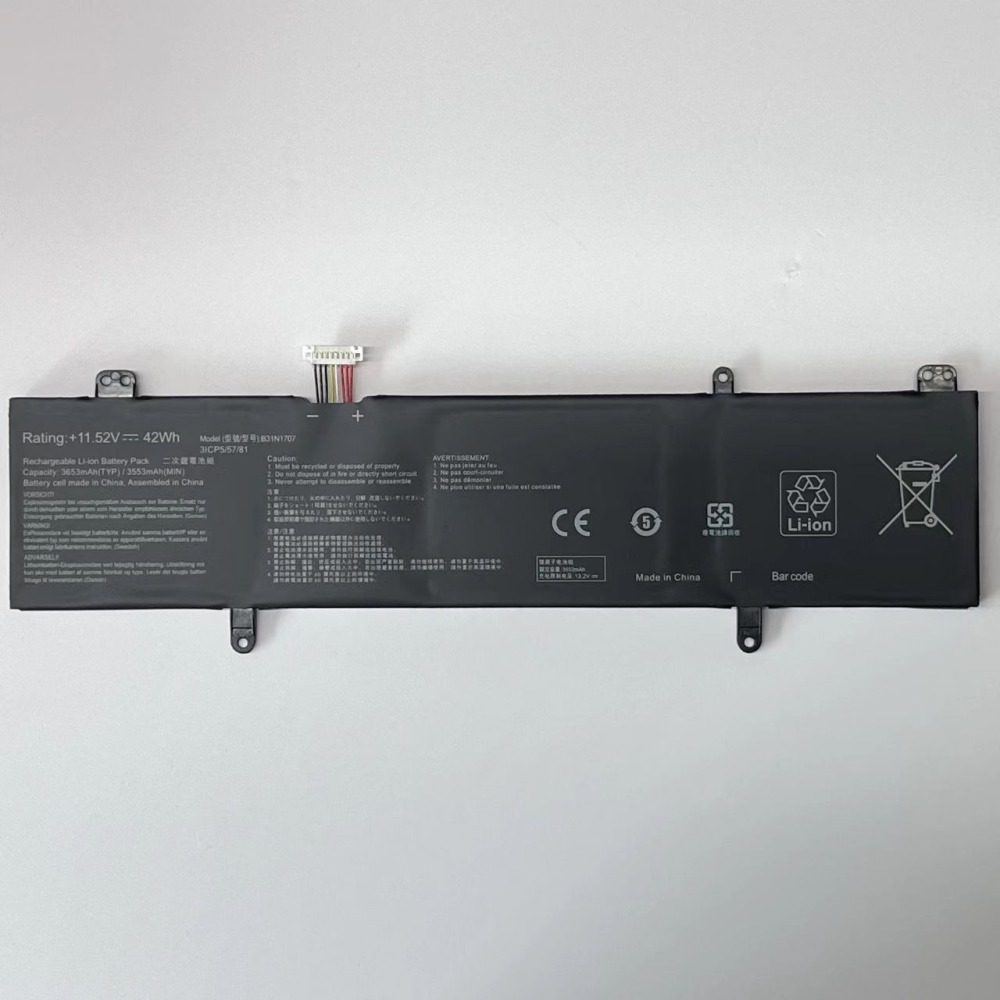 電池類型 鋰電池 電池電壓 11.52V 電池容量 3653mAh(42wh) 電池芯數 3芯 電池顏色 黑色 電池型號: B31N1707 3ICP5/57/81 適用筆電型號: ASUS A411UF F411UF P1410UF R422UF S4100V S4100VN S4100VN-8550U S4200U S4200UF