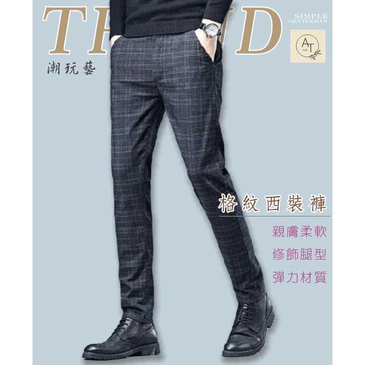 【AT 潮玩藝】 西裝褲 長褲 褲子 男生褲子 黑色褲子 直筒褲 男生西裝褲 韓系格子休閒褲 工作褲 1950