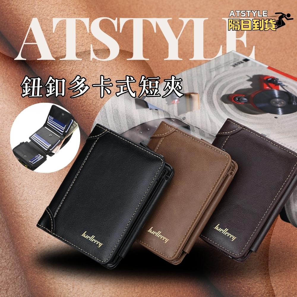 AT|鈕扣多卡式短皮夾 男皮夾 男短夾 男卡夾 男錢包 男用皮夾 男送禮小物 d9159
