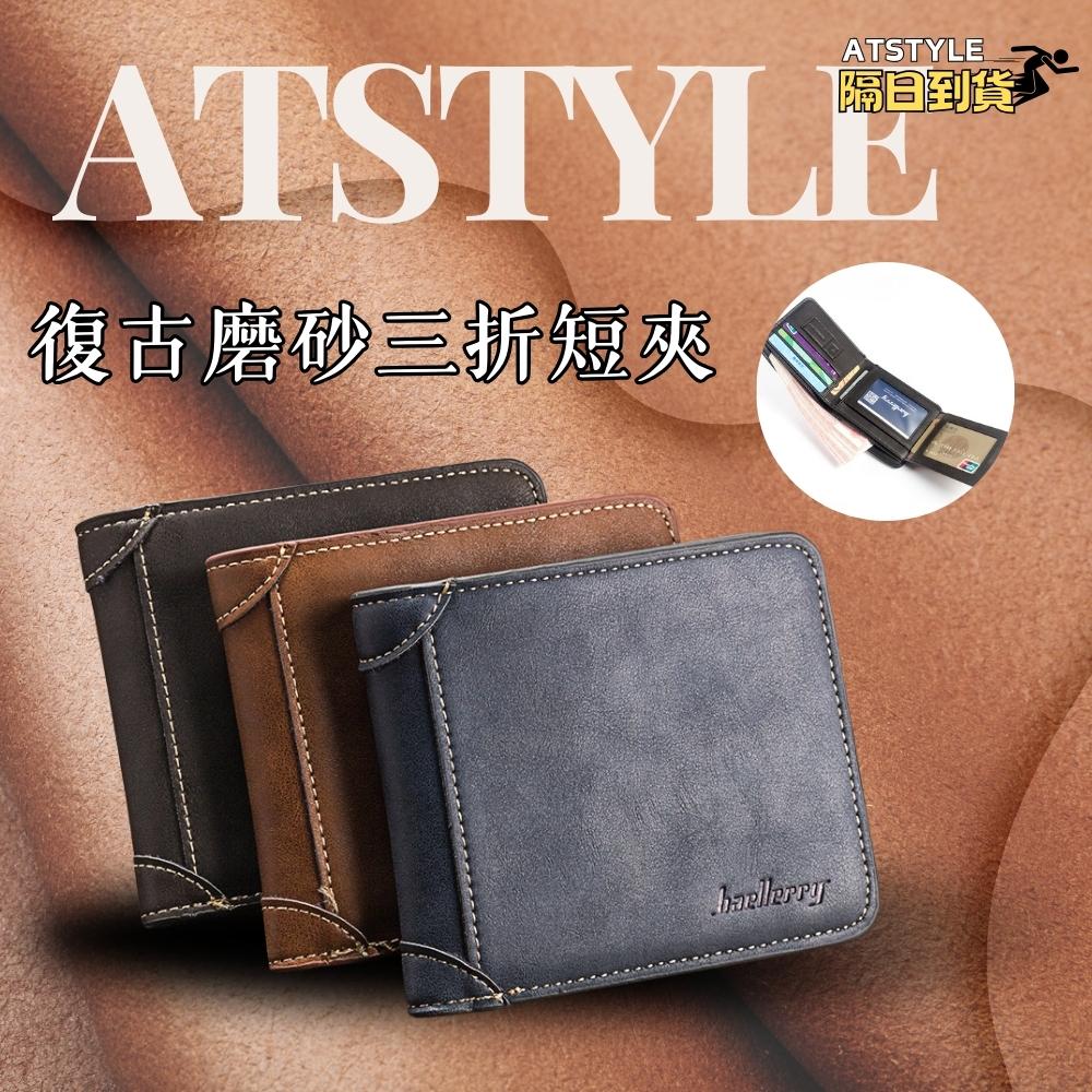 AT|復古磨砂三摺皮夾 短夾 男短夾 男皮夾 三摺短夾 男用錢包 男用皮夾 d9150