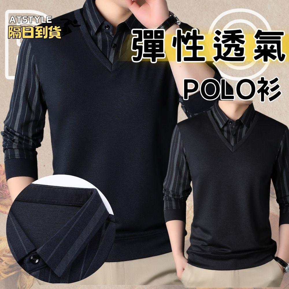 假兩件式 彈性透氣秋冬新款polo衫 秋季長袖polo衫 男款polo衫 長袖polo衫 ZG2611