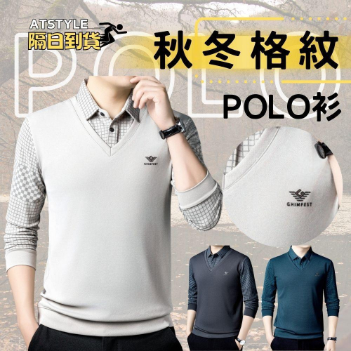 假兩件式格紋秋冬新款polo衫 秋季長袖polo衫 男款polo衫 長袖polo衫 2504