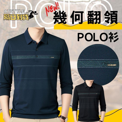 幾何翻領 秋冬新款polo衫 秋季長袖polo衫 男款polo衫 長袖polo衫 832