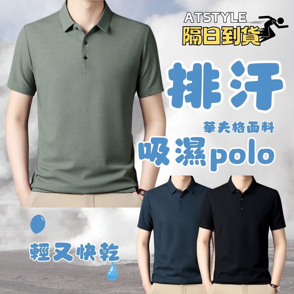 華夫格吸濕排汗POLO短衫 短袖polo衫 polo 男生上衣 排汗衫 速乾 休閒POLO衫 高級感LJ-669